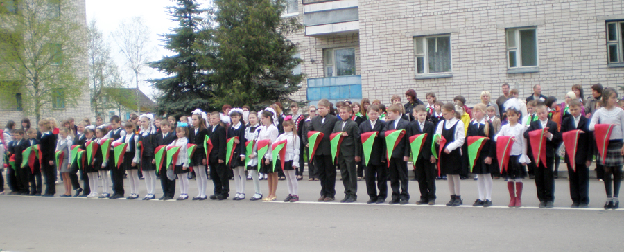 Затем состоялся торжественный приём нового пополнения учащихся школ района в ряды молодёжных организаций – ОО «БРПО» и ОО «БРСМ». Начался он с выноса знамени и возложения цветов. После произнесения ребятами торжественного обещания были повязаны галстуки пионерам. Членские билеты РК ОО «БРСМ» вручали И. А. Лавринович и заместитель председателя райисполкома И. А. Дервоед.