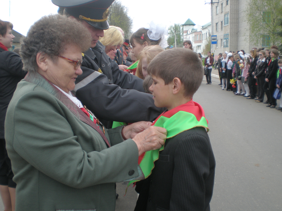 От имени ветеранов пионерского движения выступила Н. В.Кабак. Надежда Власовна рассказала о подвигах пионеров во время немецкой оккупации. Ветеран Великой Отечественной войны П. В. Глоба пожелал молодому поколению успехов в учебё, уважения к родителям и учителям, счастья, мира и здоровья. И. о. первого секретаря РК ОО «БРСМ» Алеся Козловская к этим пожеланиям добавила ещё одно – активного участия в общественных делах молодёжных организаций.