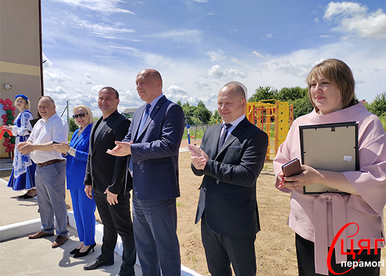 Красную ленточку обновлённой дворовой территории перерезали председатель райисполкома Иван Федоров, председатель районного Совета депутатов Сергей Шляднев, Валентин Клюшин и Виктор Фаустович. В мероприятии приняли участие заместитель председателя райисполкома Марина Фалибога-Петухова, начальник отдела по образованию райисполкома Елена Крутикова, директор ЦДиМ Елена Минакина, футболисты ФК «МЛ-Витебск». Юные артисты вокальной группы «Алые паруса» центра детей и молодёжи и озорной Чебурашка (Александр Устинов) добавили настроения в солнечный погожий день.