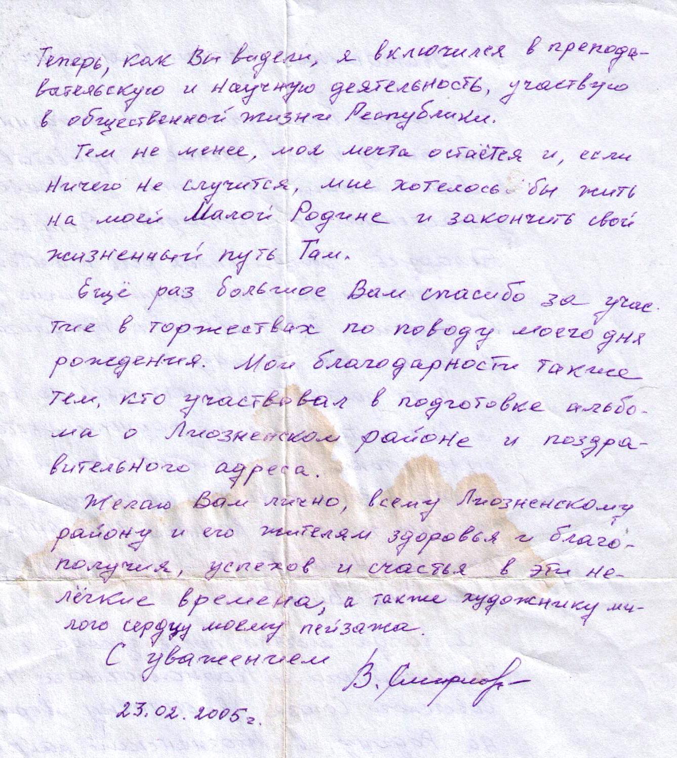 – Я дружил с Женей Глушаковым, братом будущей жены Смирнова Тамарой. Так и познакомился с Виталием, который уже тогда часто бывал в доме Глушаковых. Секретарь комсомольской организации школы, эрудит, он, разумеется, обращал на себя внимание, но так как мы были намного младше, дружба, конечно же, не завязалась. А в зрелые годы общались. Именно Виталий Степанович помог мне сделать офтальмологическую операцию, о которой я давно мечтал. Когда в Минске обратился к нему за помощью, он встретил очень приветливо, сразу куда-то позвонил и меня направили в спецполиклинику на приём к профессору Золотарёвой, ученице самого Филатова. И хотя зрение вернуть не удалось, операция прошла успешно. Я очень благодарен Виталию Степановичу за неравнодушие. Помню, когда он был послом в Пакистане и приехал на родину, в клубе была организована его лекция. Я тоже на ней был. Люди слушали рассказ Смирнова буквально раскрыв рот. Задавали много вопросов. Посчастливилось мне бывать и у него на даче возле Добромыслей. Особенно впечатлил рабочий кабинет с множеством книг.