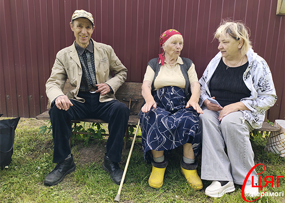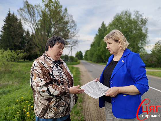 Следующий пункт посещения – Погостище. Заезжаем к старейшине Татьяне Симанович, с которой обсуждаем животрепещущие вопросы: состояние общественного колодца, обкос участков, снос ветхого забора возле одного из пустующих домов, удаление аварийных деревьев на гражданском кладбище. Далее председатель сельисполкома акцентирует внимание на необходимость организации подписки на районную газету среди местных жителей. По словам Татьяны Викторовны, «Сцяг перамоги» в деревне любят и ждут, но активировать читателей в этом направлении всё-таки нужно.
