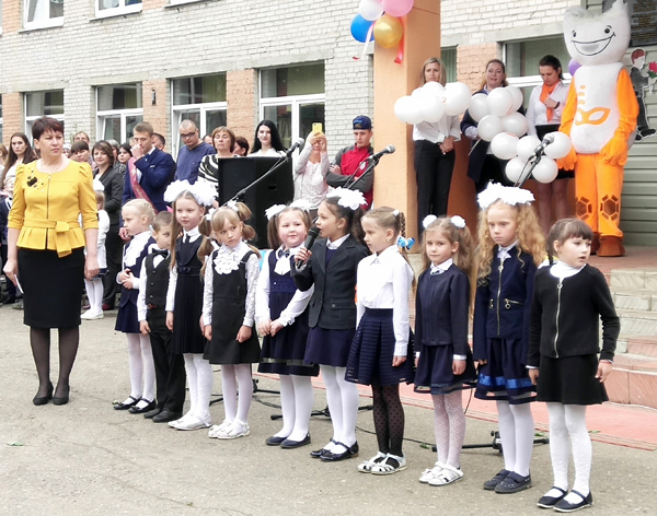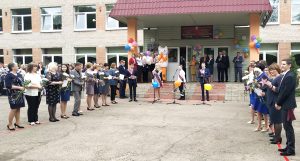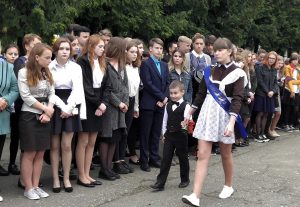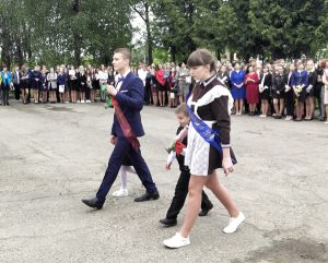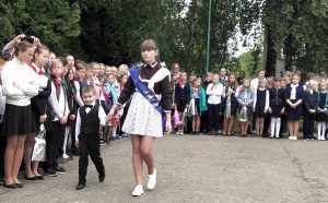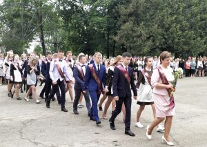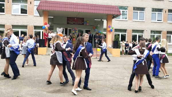 Право дать последний звонок предоставили ученикам 11 класса Анастасии Могилевец, Кириллу Хованскому и первоклассникам Ксении Осипенко и Арсению Асланову.